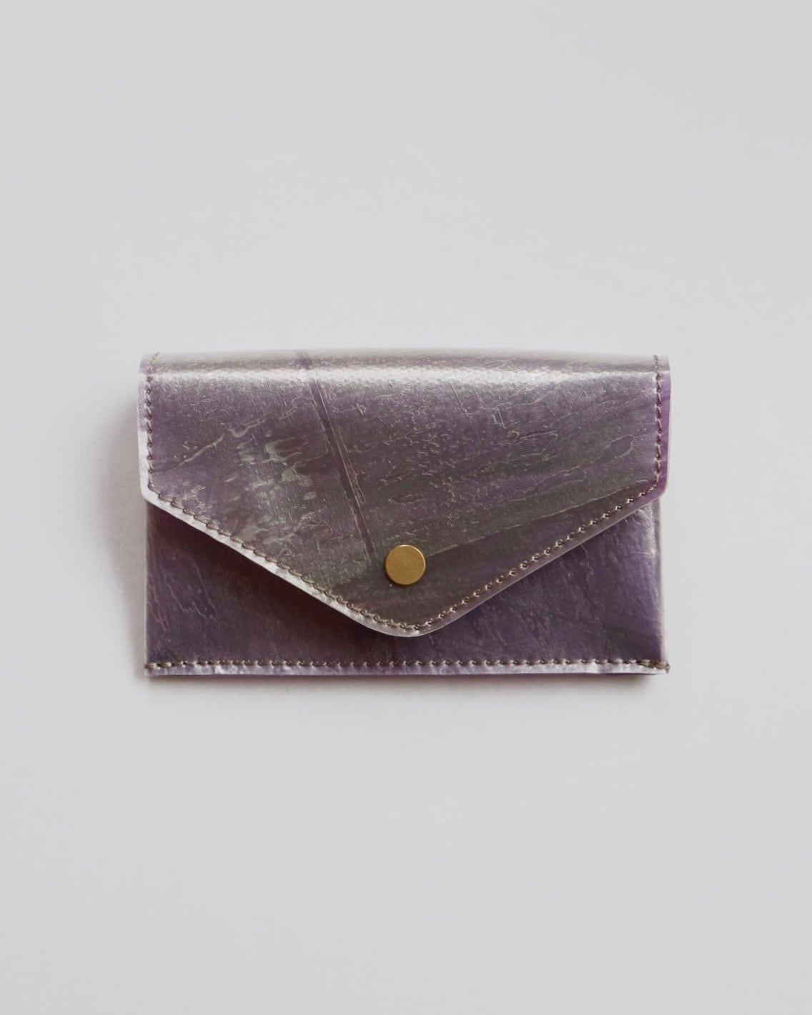 カラーが元々ついているカラフルなビニール傘と、透明傘を縫い合わせたカードケース。